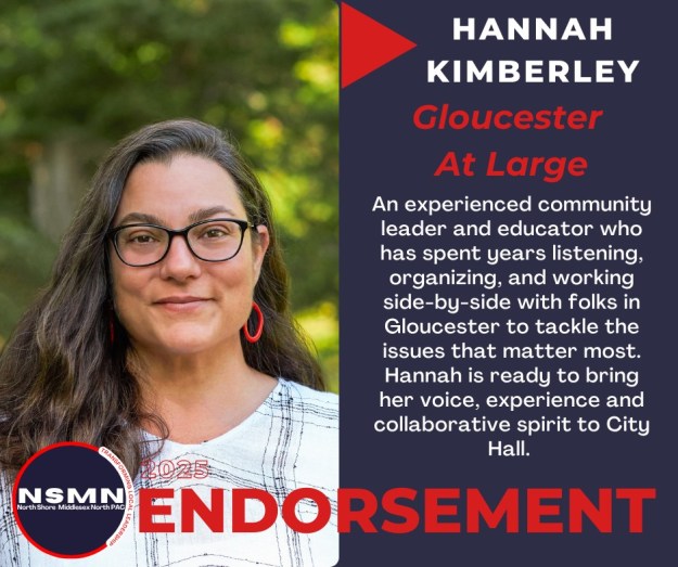 I’ve known Hannah Kimberley, candidate for councilor at-large, for many years. She is an organized person who follows up on everything that’s needed, and is able to make hard decisions, an excellent and helpful quality for a member of Gloucester’s City Council.